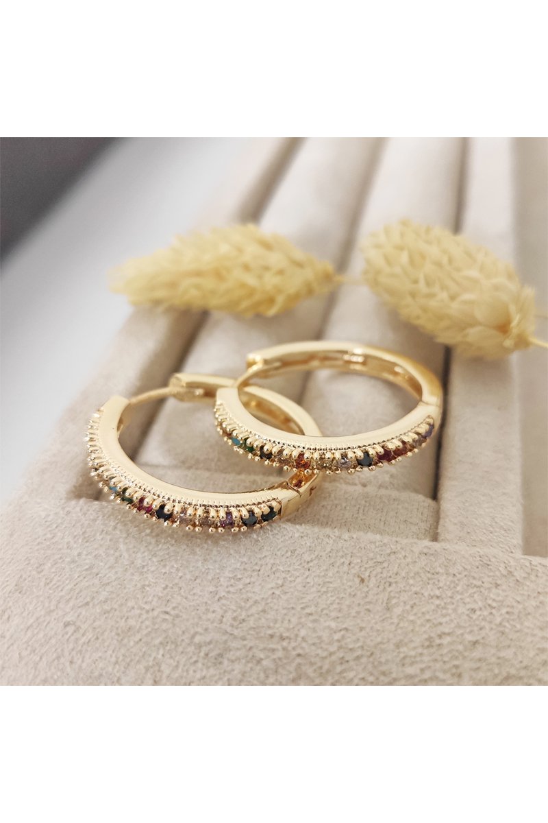 Argolas folheadas a ouro fino com zircões.