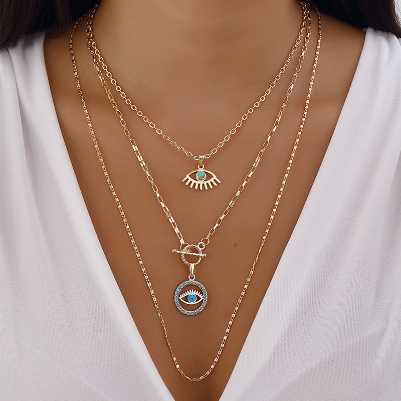 Colar múltiplo - Latão dourado e zircão