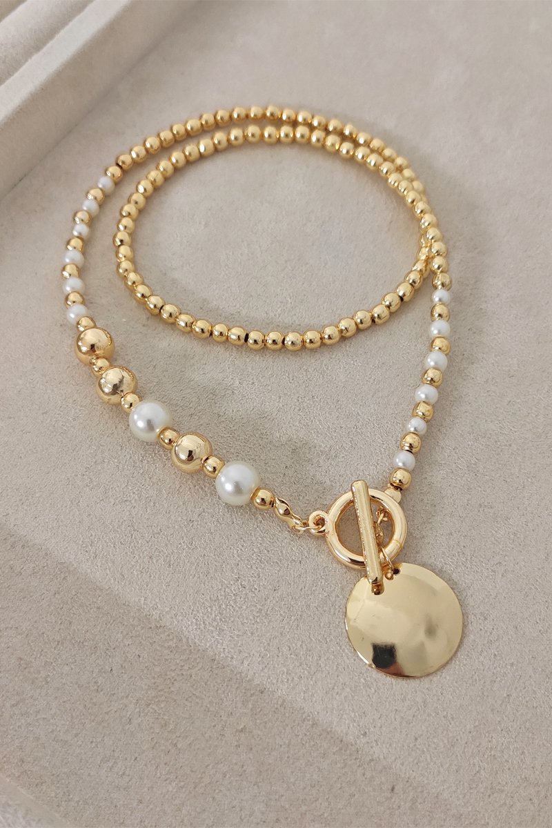 Colar folheado a ouro fino com pérolas de imitação.