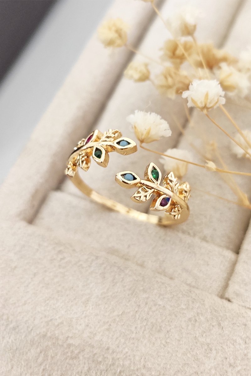 Anel folheado a ouro fino amarelo - Zircões