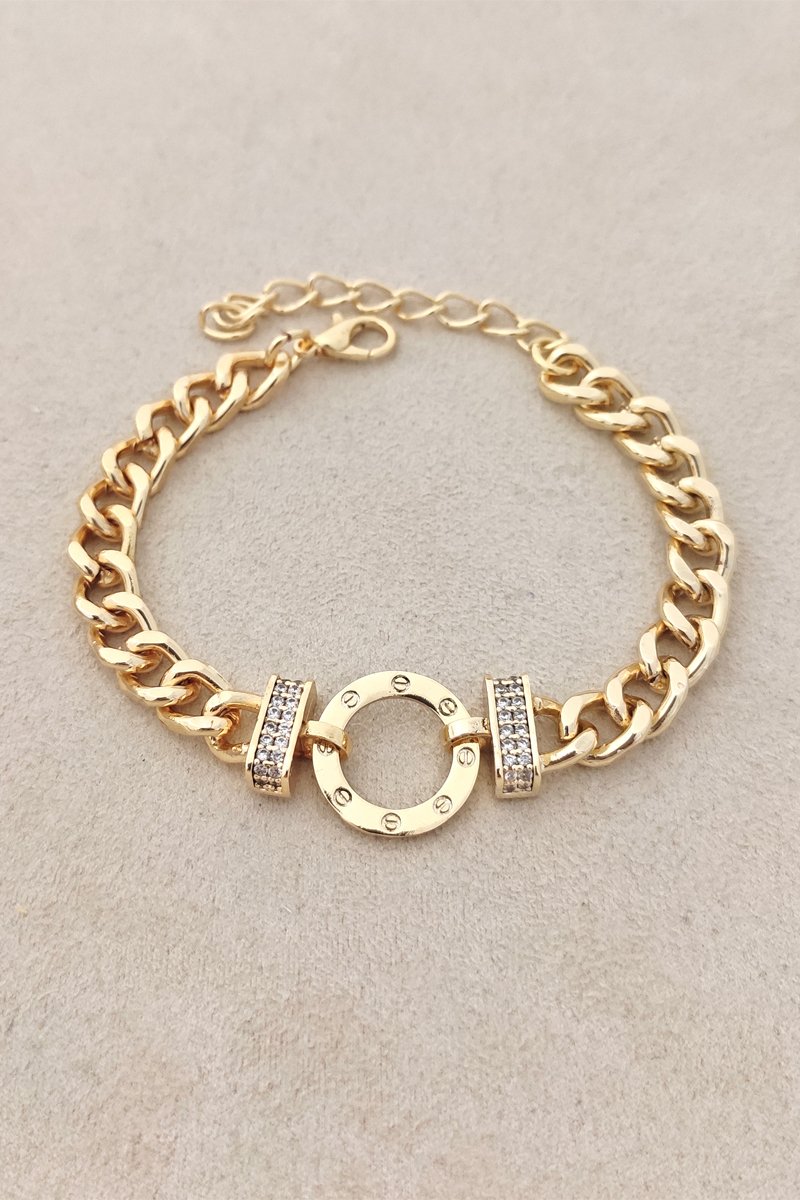 Pulseira folheada a ouro fino com zircões.