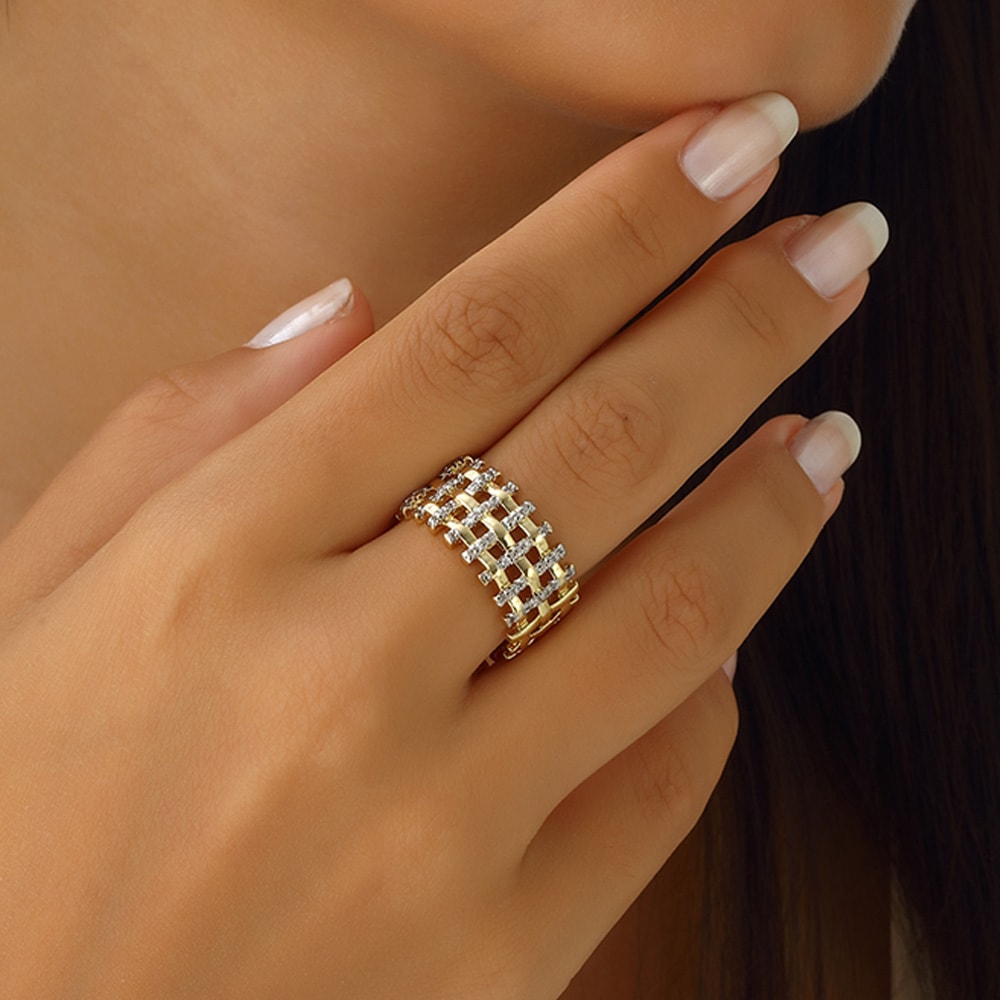 Anel folheado a ouro fino - Zircões