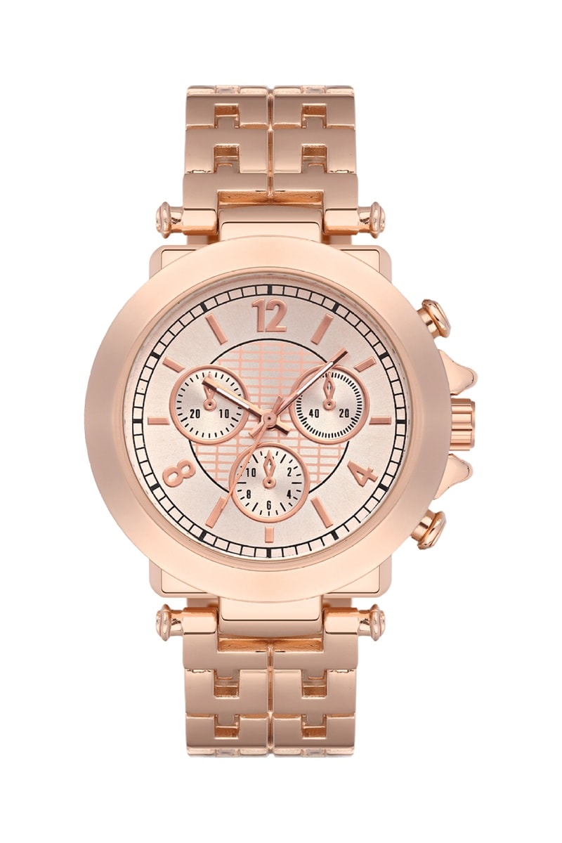 Relógio de quartzo em metal - Dourado-rosa - Cronógrafo