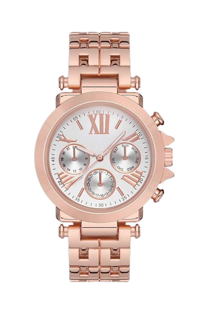 Relógio de quartzo em metal - Dourado-rosa - Cronógrafo
