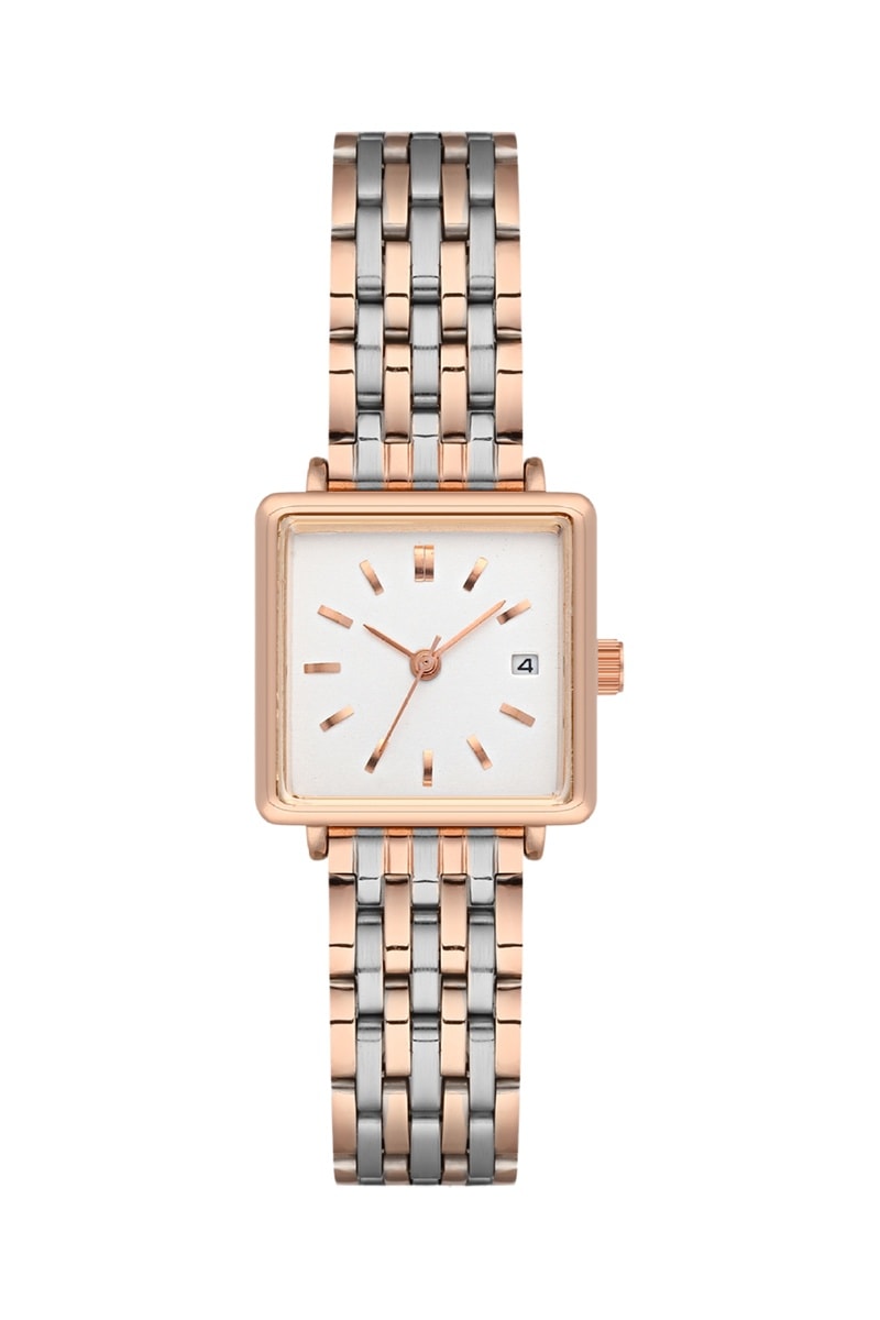 Relógio de quartzo em aço - Dourado-rosa e prateado