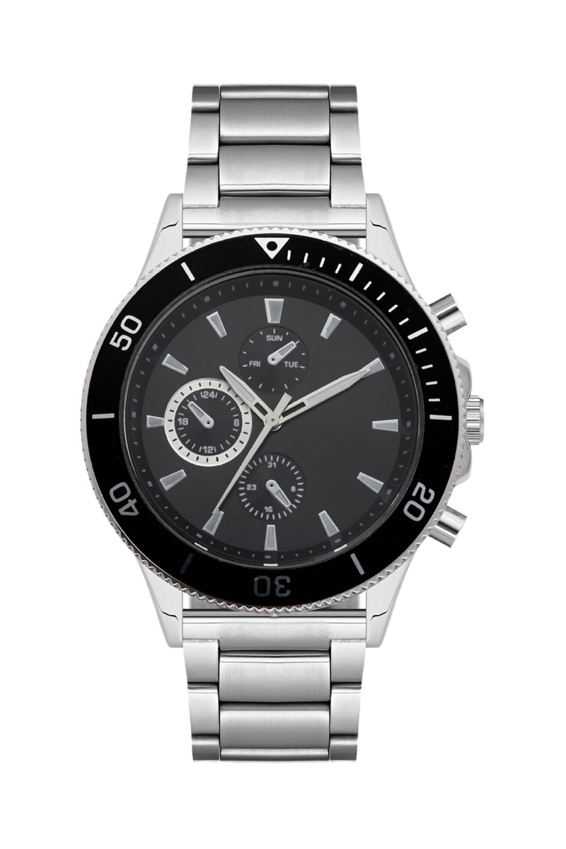 Relógio de quartzo em aço - Prateado e preto - Cronógrafo