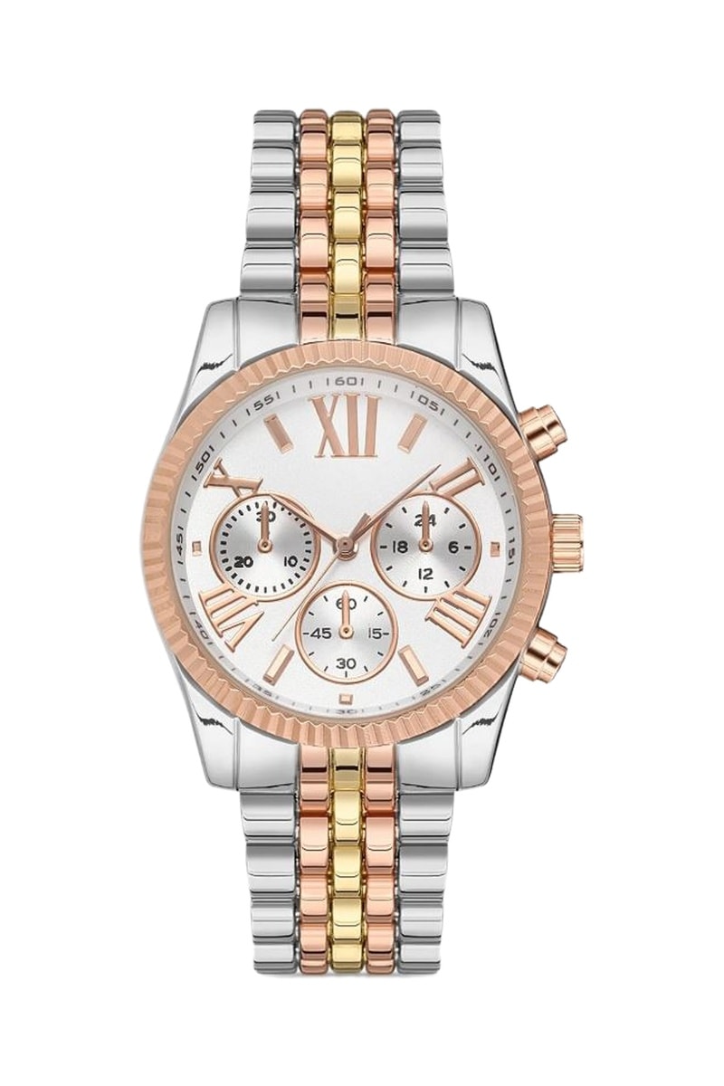 Relógio de quartzo em metal - Prateado, dourado e dourado-rosa - Cronógrafo