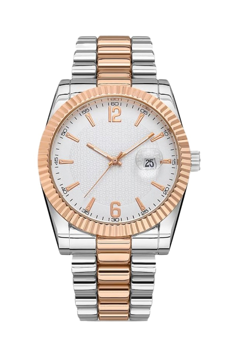 Relógio de quartzo em metal - Prateado e dourado-rosa