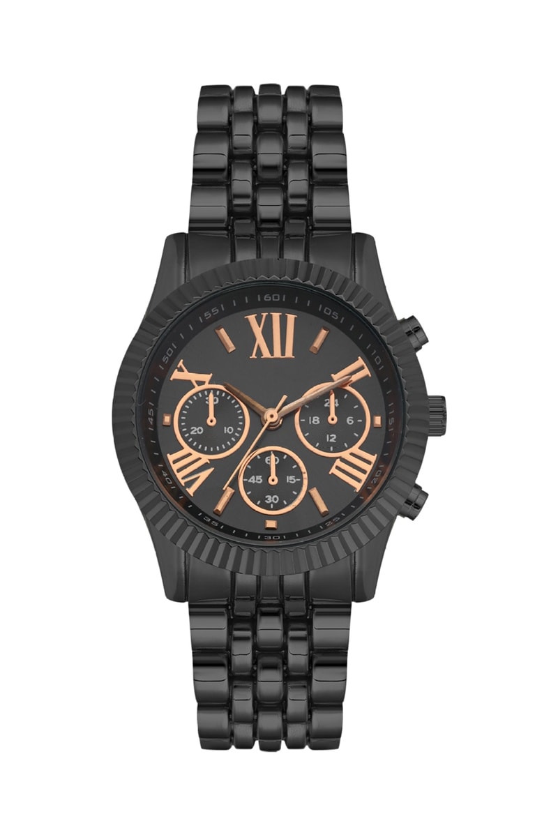 Relógio de quartzo em metal - Preto - Cronógrafo