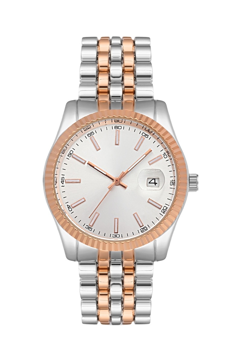 Relógio de quartzo em metal - Prateado e dourado-rosa