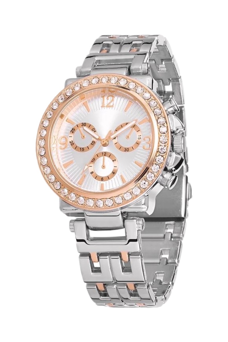 Relógio de quartzo em metal e diamantes - Cronógrafo
