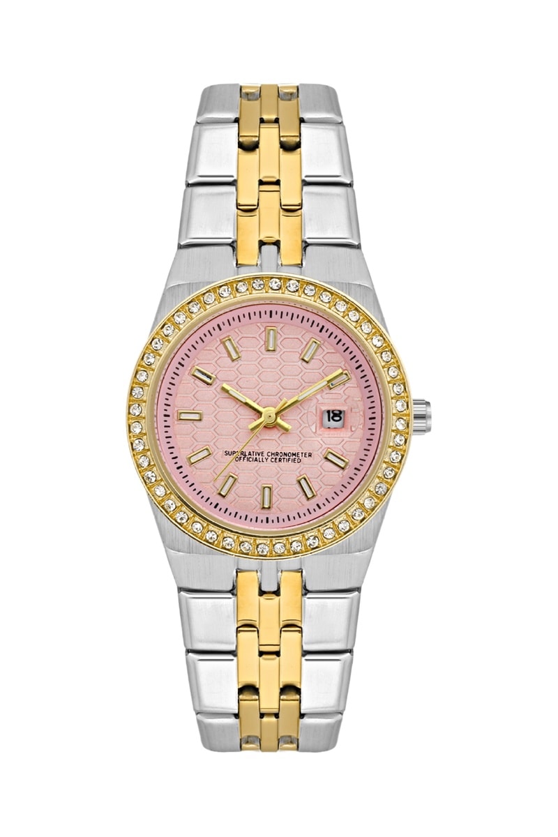 Relógio de quartzo em aço e diamantes