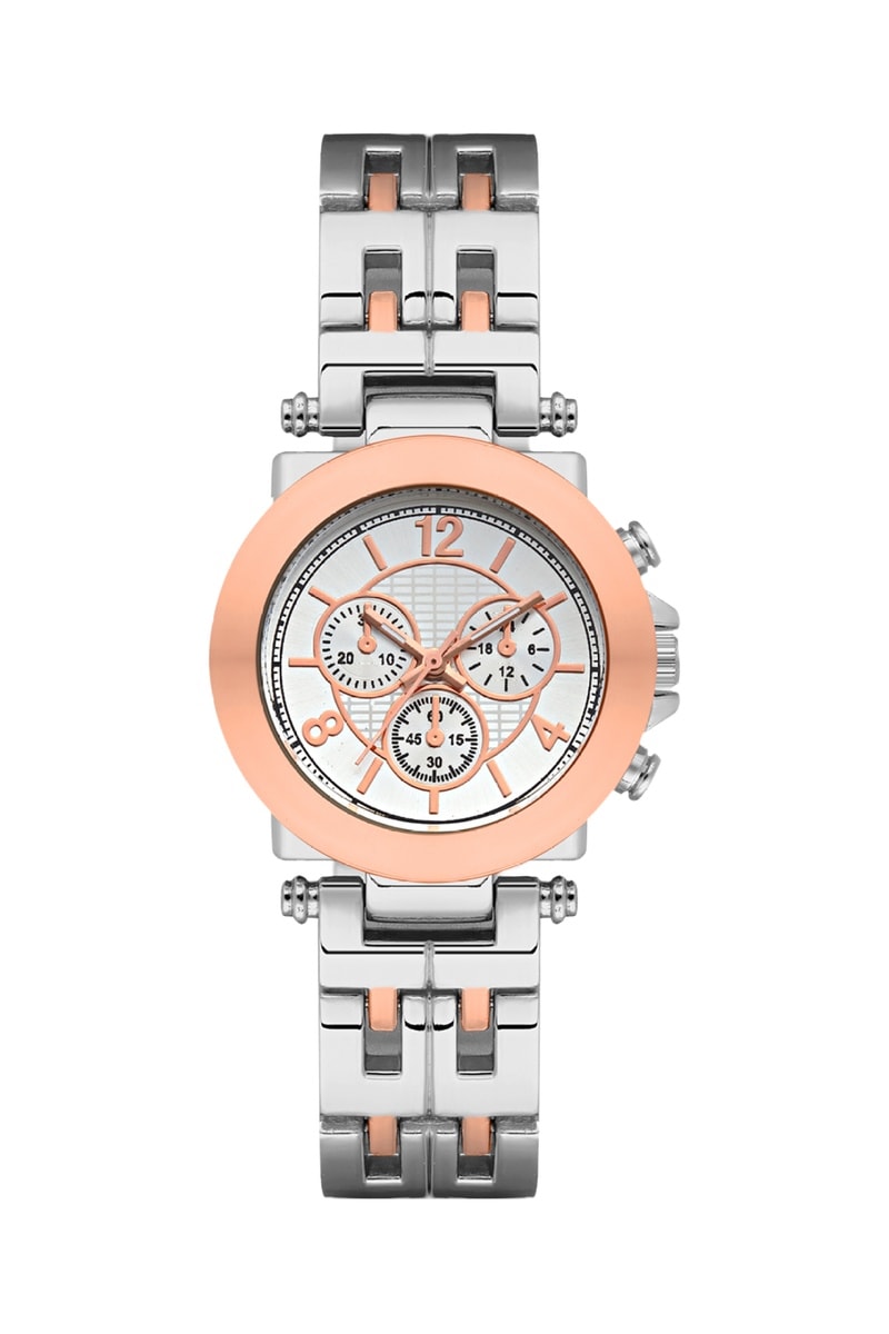 Relógio de quartzo em metal - Prateado e dourado-rosa - Cronógrafo