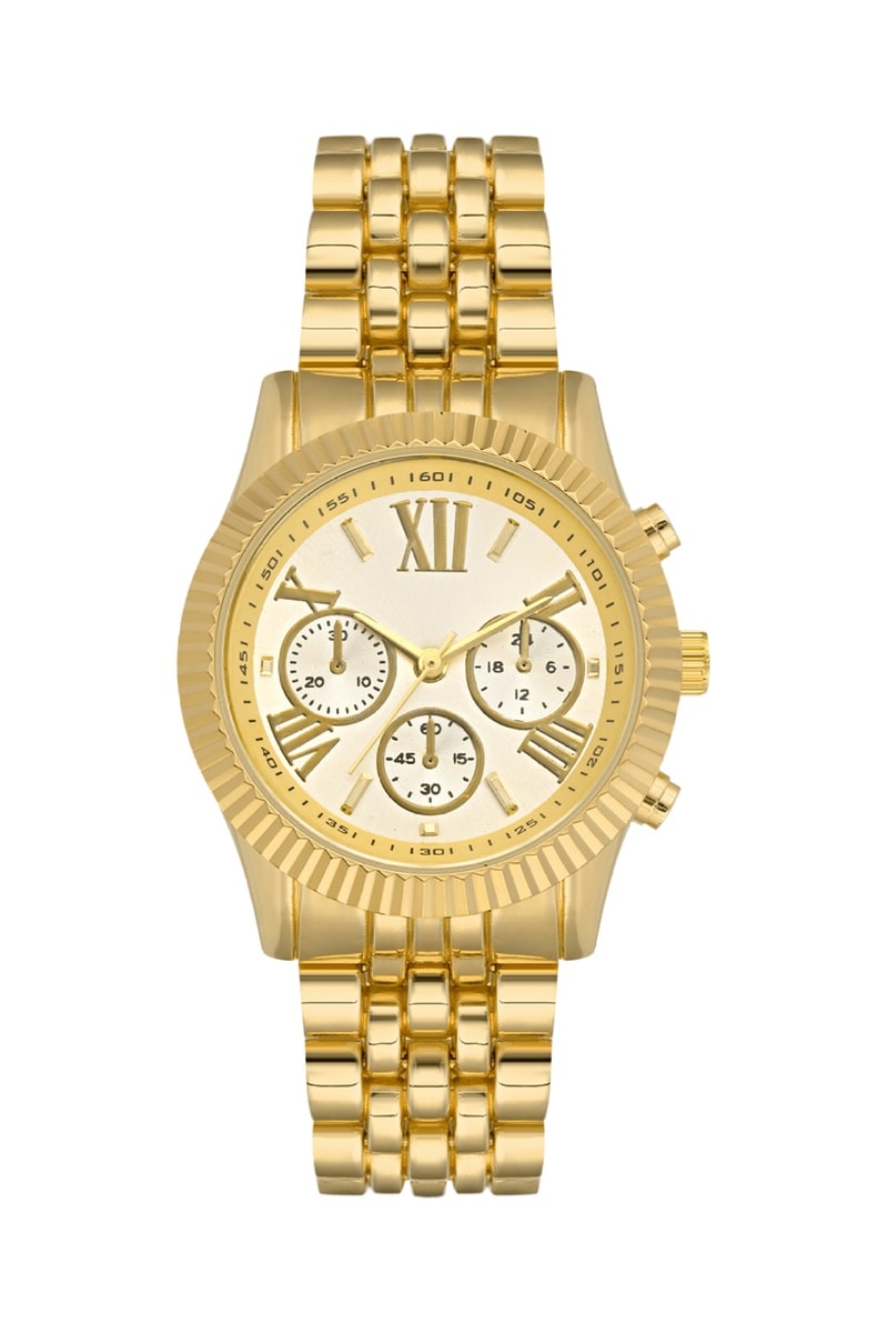 Relógio de quartzo em metal - Dourado - Cronógrafo