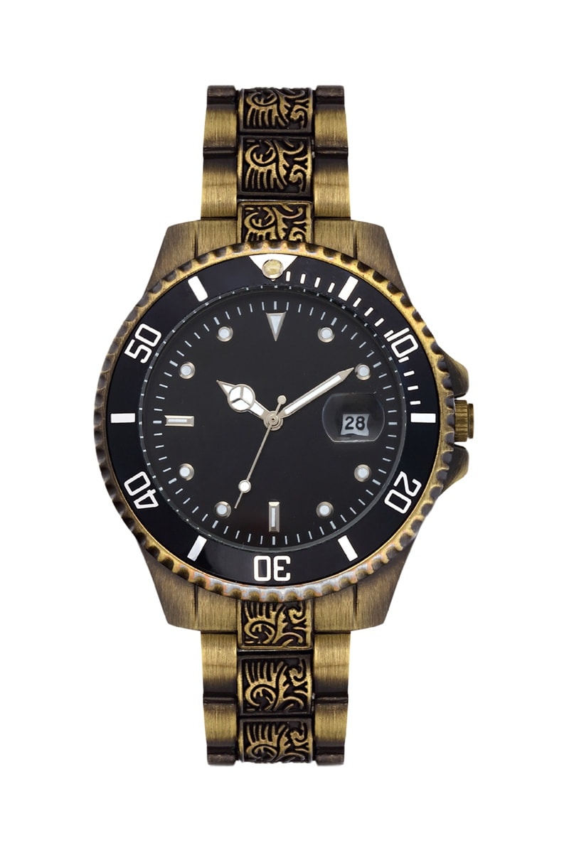 Relógio de quartzo em metal - Dourado e preto