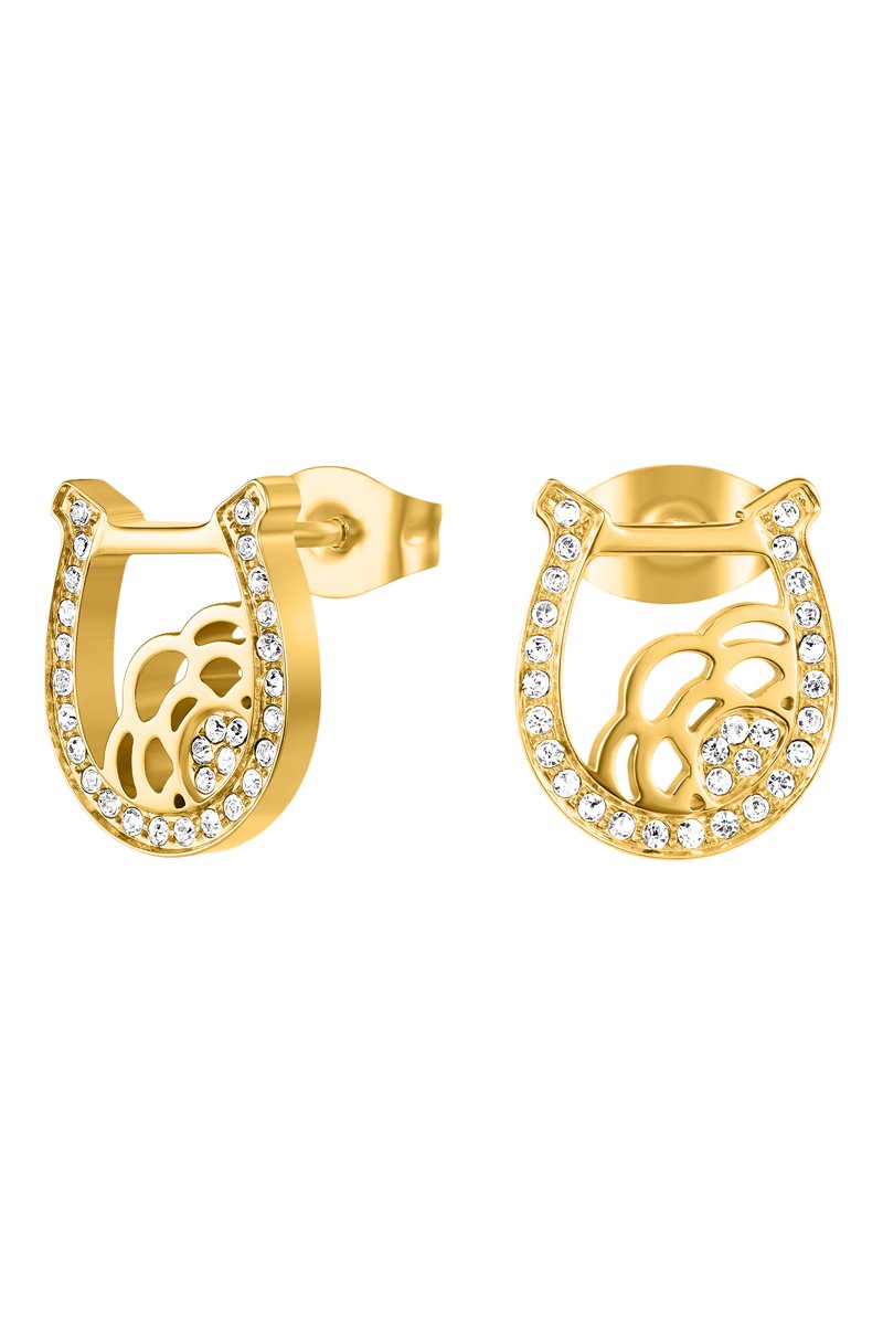 Brincos pendentes banhados a ouro amarelo com cristais.