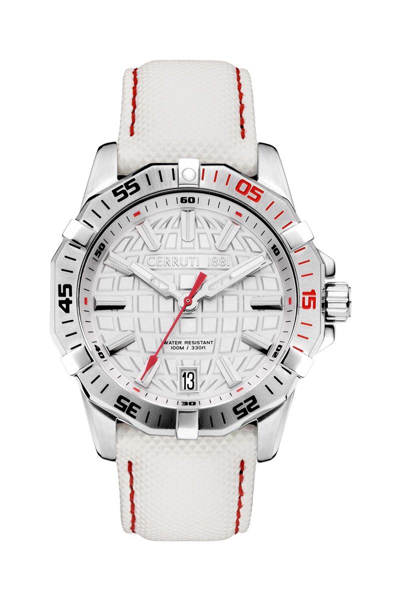 Relógio de quartzo em couro e nylon Vallelaghi - Branco e prateado