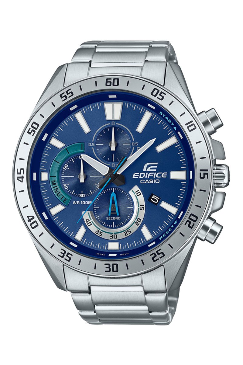 Relógio de quartzo em aço - Cronómetro - Prateado e azul-escuro