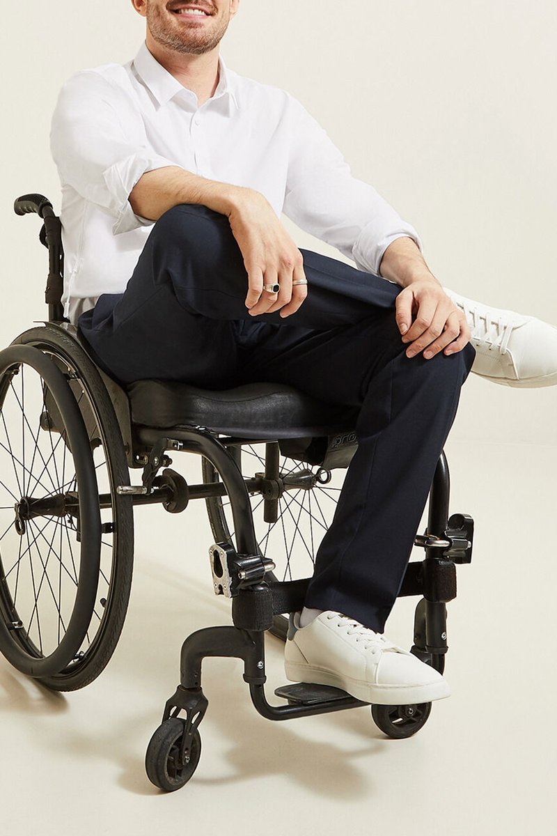 O modelo mede 1 m 86 e veste o artigo no tamanho 40.
