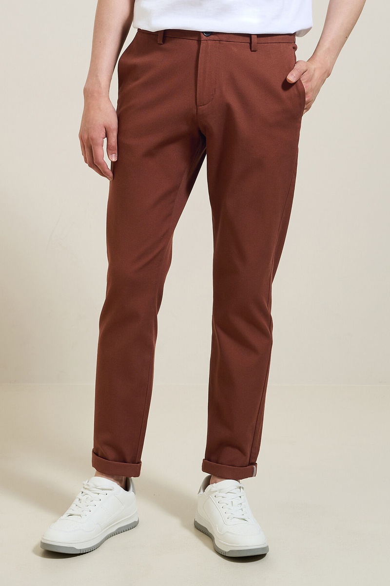 Calças chino slim em algodão biológico misturado.