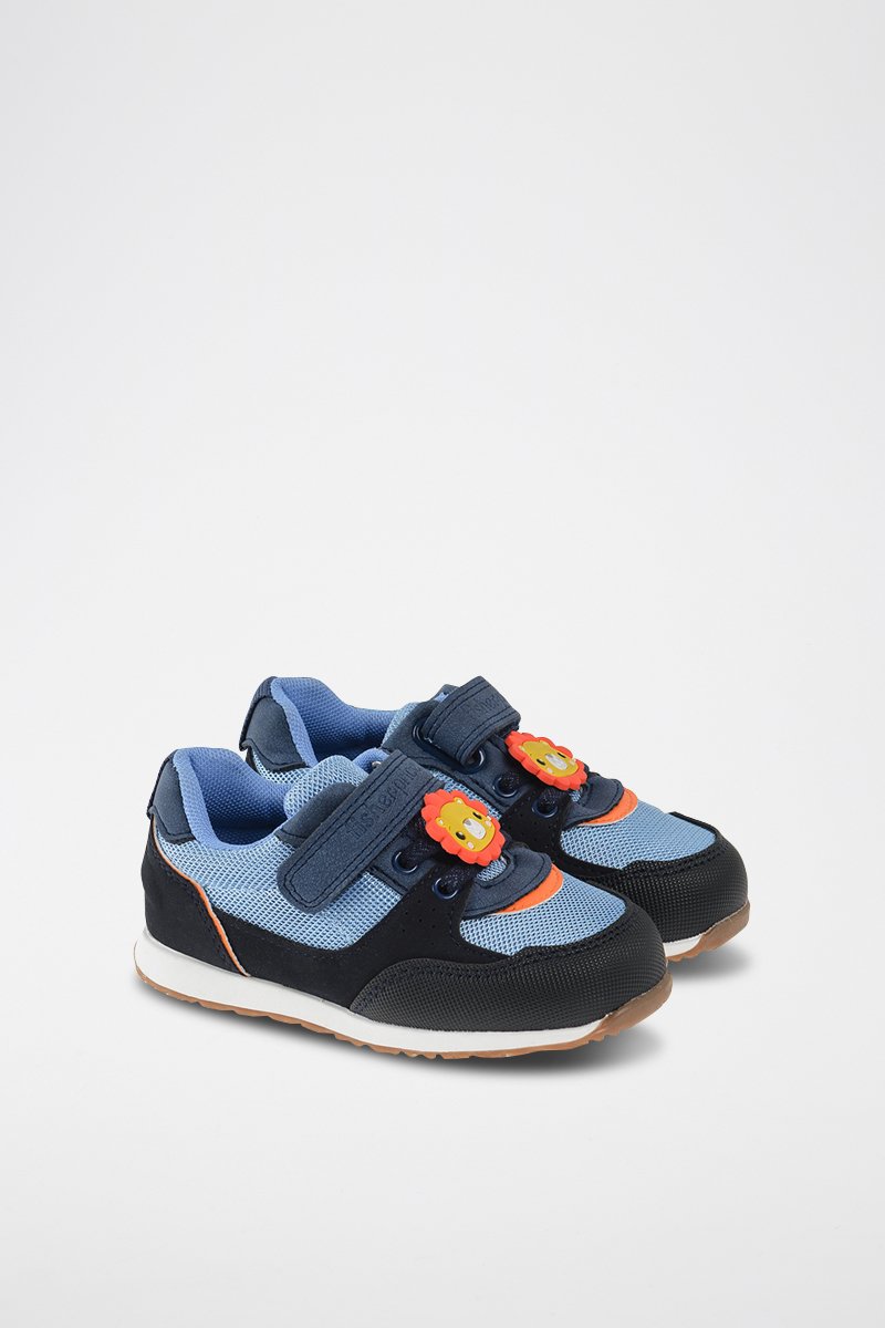 Cor: azul-celeste, preto, azul escuro e amarelo