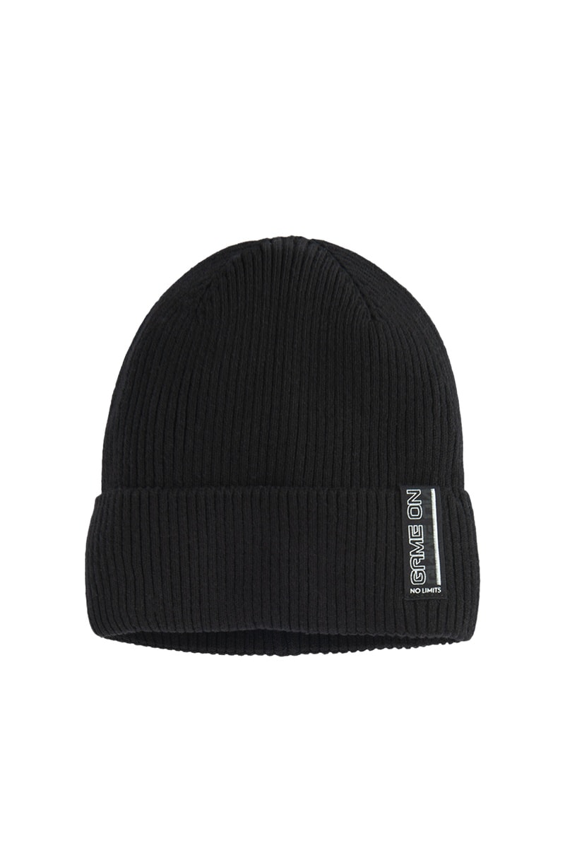 Gorro em malha canelada.