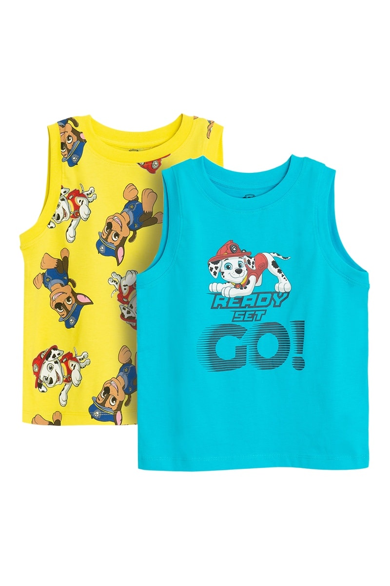 2 camisolas de alças Chase e Marcus Patrulha Pata - Turquesa e amarelo