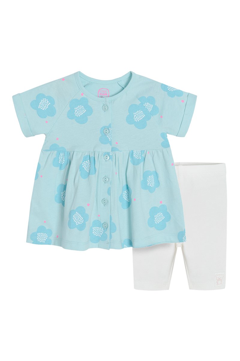 Vestido e leggings - Verde-água e branco