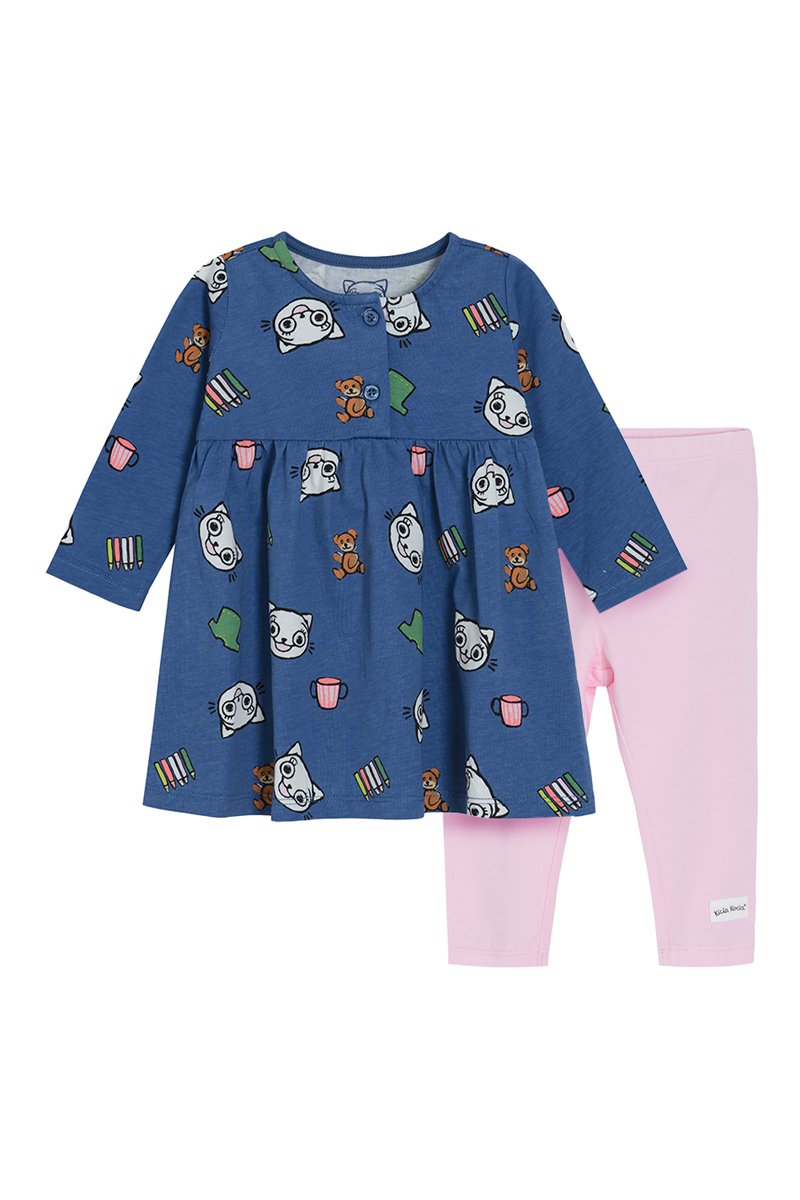Vestido e leggings Kicia Kocia - Azul-marinho mesclado e rosa