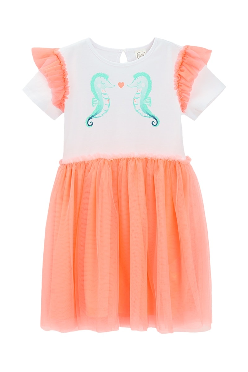 Vestido de mangas curtas com folhos.