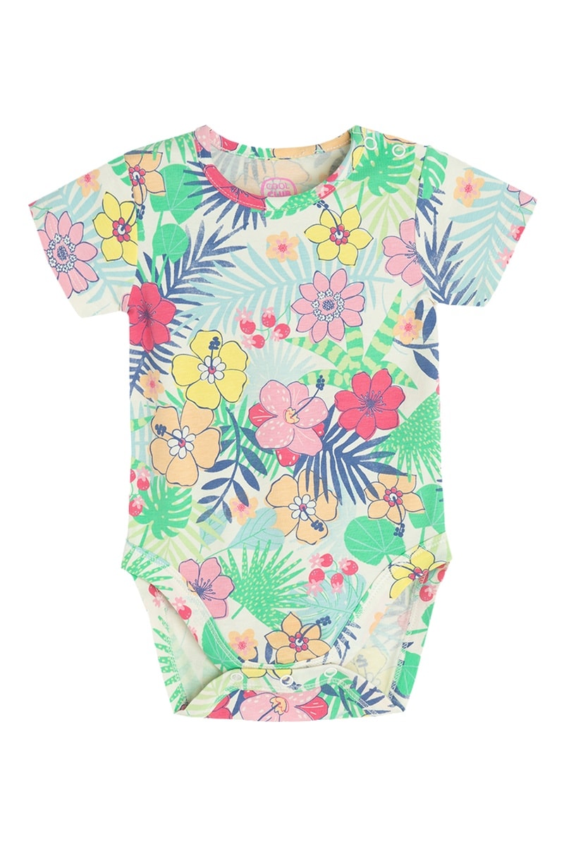 Fecho pressionável no ombro esquerdo e entre as pernas.