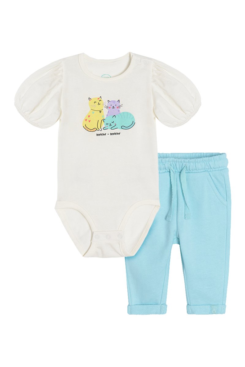 Body e calças - Branco e turquesa