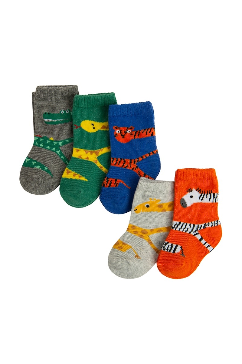 5 pares de meias - Cinzento-escuro mesclado, verde-escuro e azul-escuro