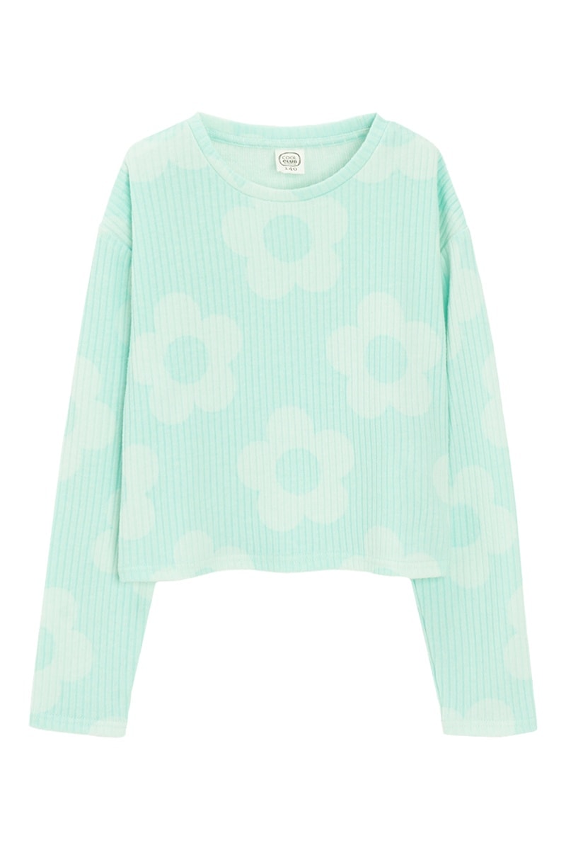 T-shirt em malha canelada.