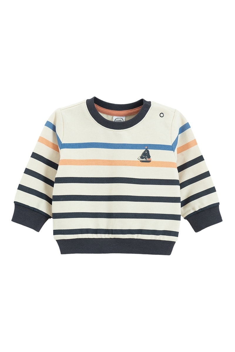 Estampado às riscas nas mangas e à frente.