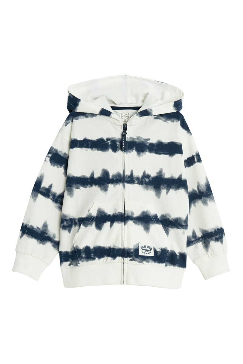 Sweat com capuz tie and dye - Branco e azul-marinho