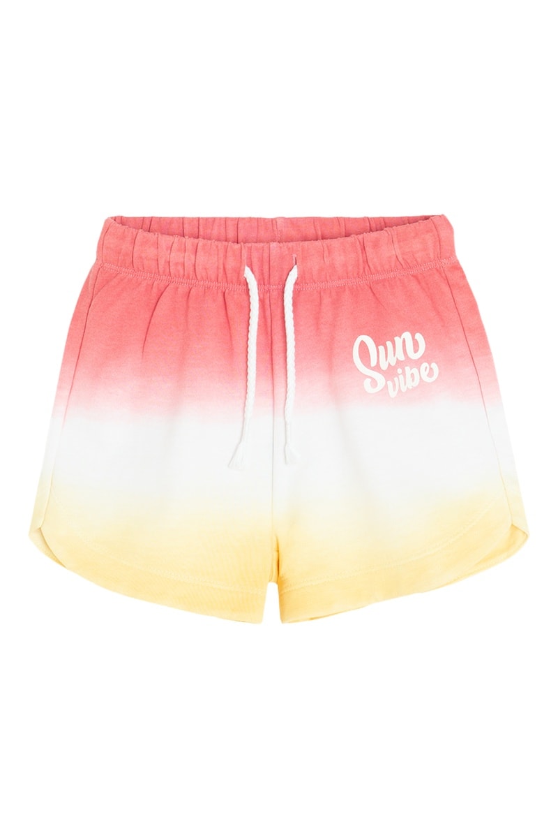 Calções dip and dye - Coral e amarelo