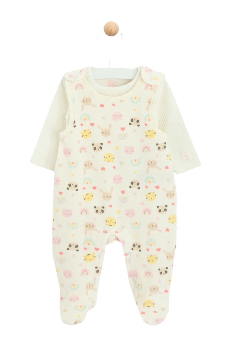 Fecho pressionável no ombro esquerdo e entre as pernas.