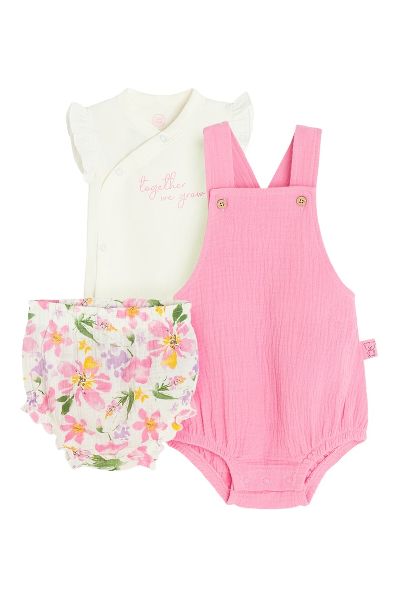Conjunto 3 peças - Rosa e cru