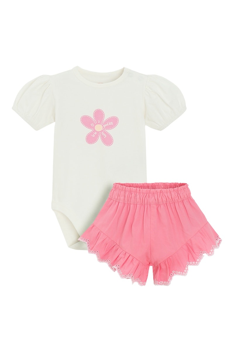 Body e calções - Branco e rosa