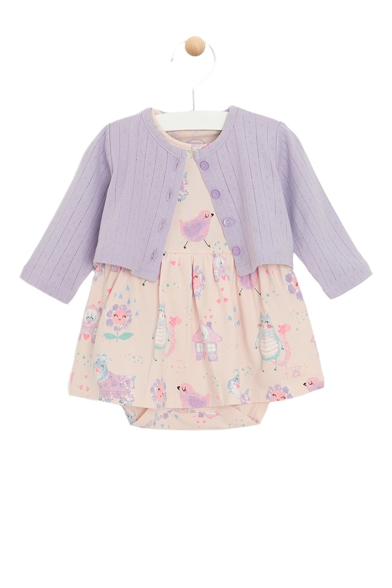 Body-vestido e casaco de malha - malva e bege