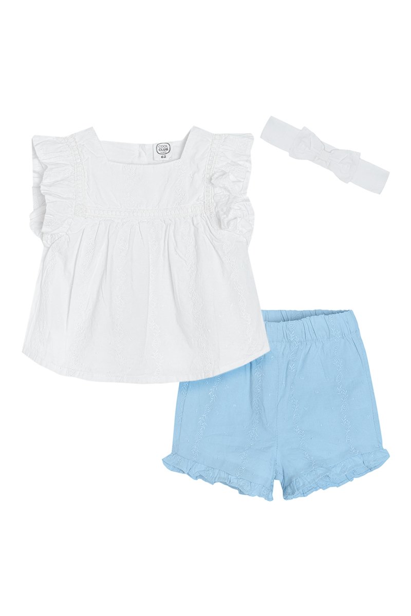 Conjunto de 3 peças - Branco e azul-claro