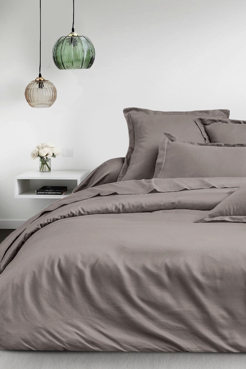 Capa de edredão em cetim de algodão - Cinzento