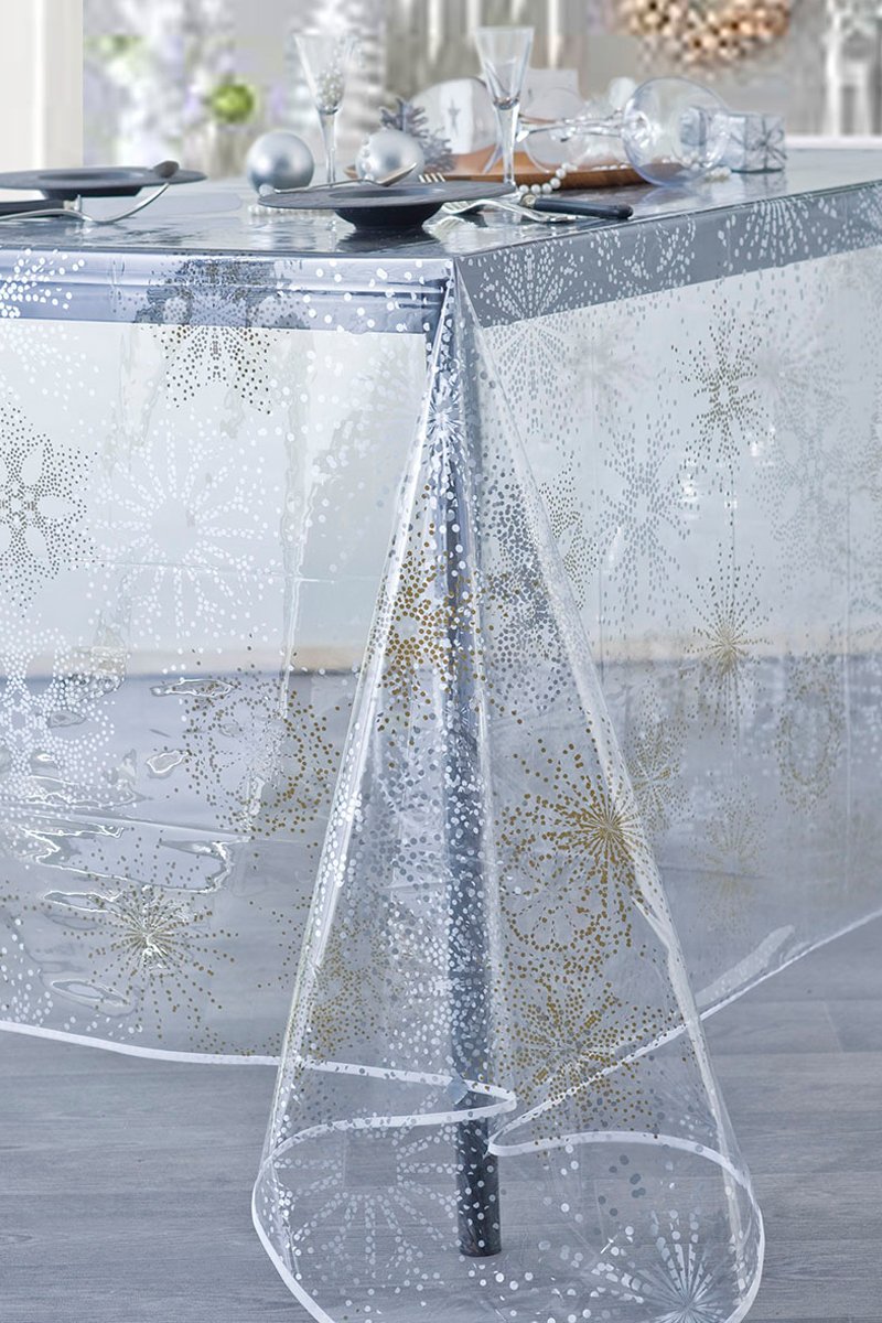 Toalha de mesa retangular Periclase - Transparente e dourado