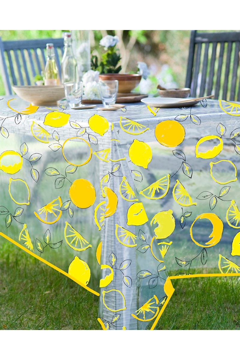 Toalha de mesa redonda Agrume - Transparente e amarelo
