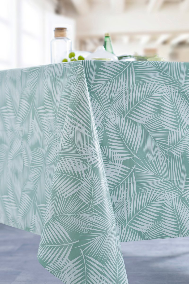 Toalha de mesa Feuille Tropical - Azul e branco