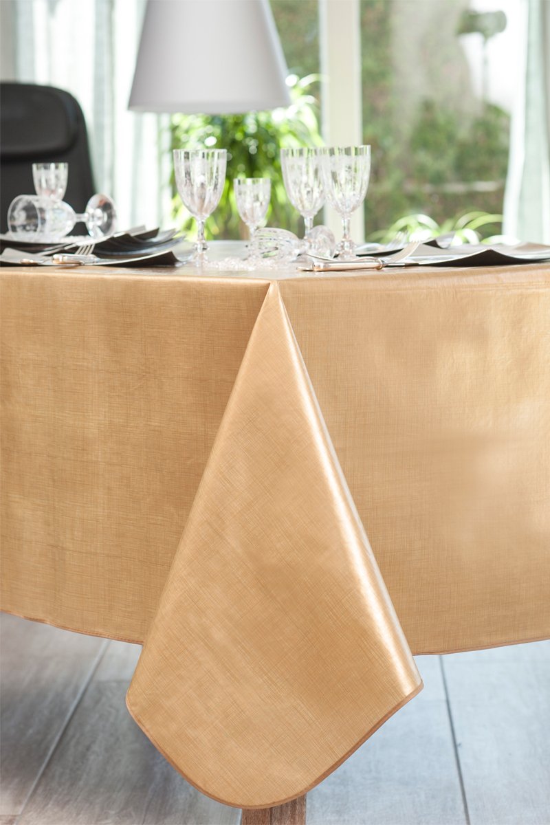 Toalha de mesa de plástico retangular Efeito tecelagem - Dourado