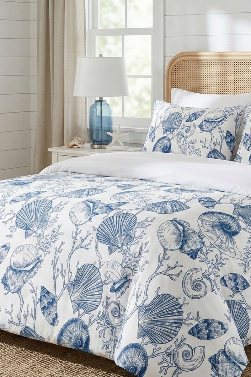 Conjunto de edredão em algodão - 57 fios/cm² - Azul e branco