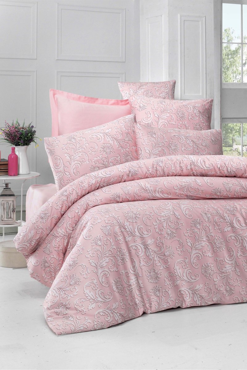 Conjunto de edredão em algodão - Rosa e branco