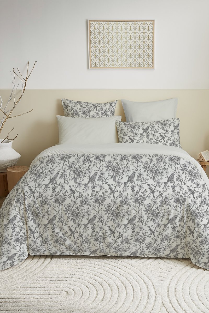 Pack conjunto de edredão reversível em algodão 57 fios/cm² - Cinzento e branco